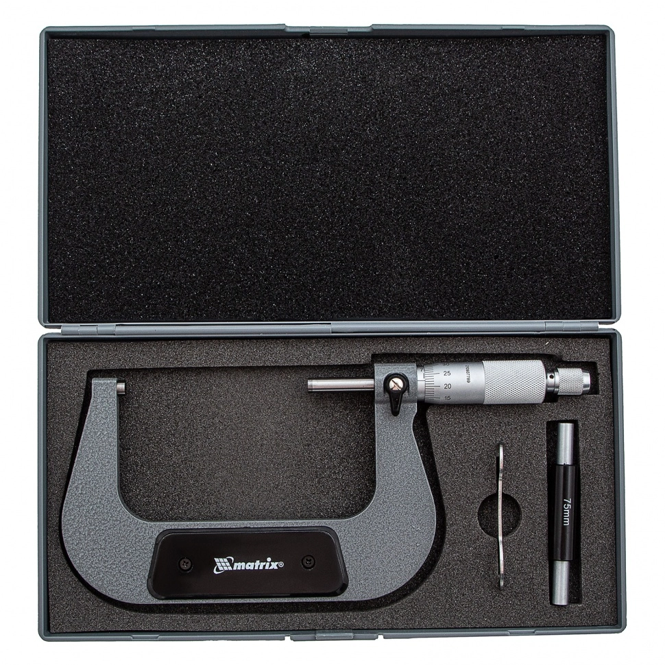 Механический микрометр Matrix 317005 используется для измерения толщины листового металла и деталей размером 75-100 мм.