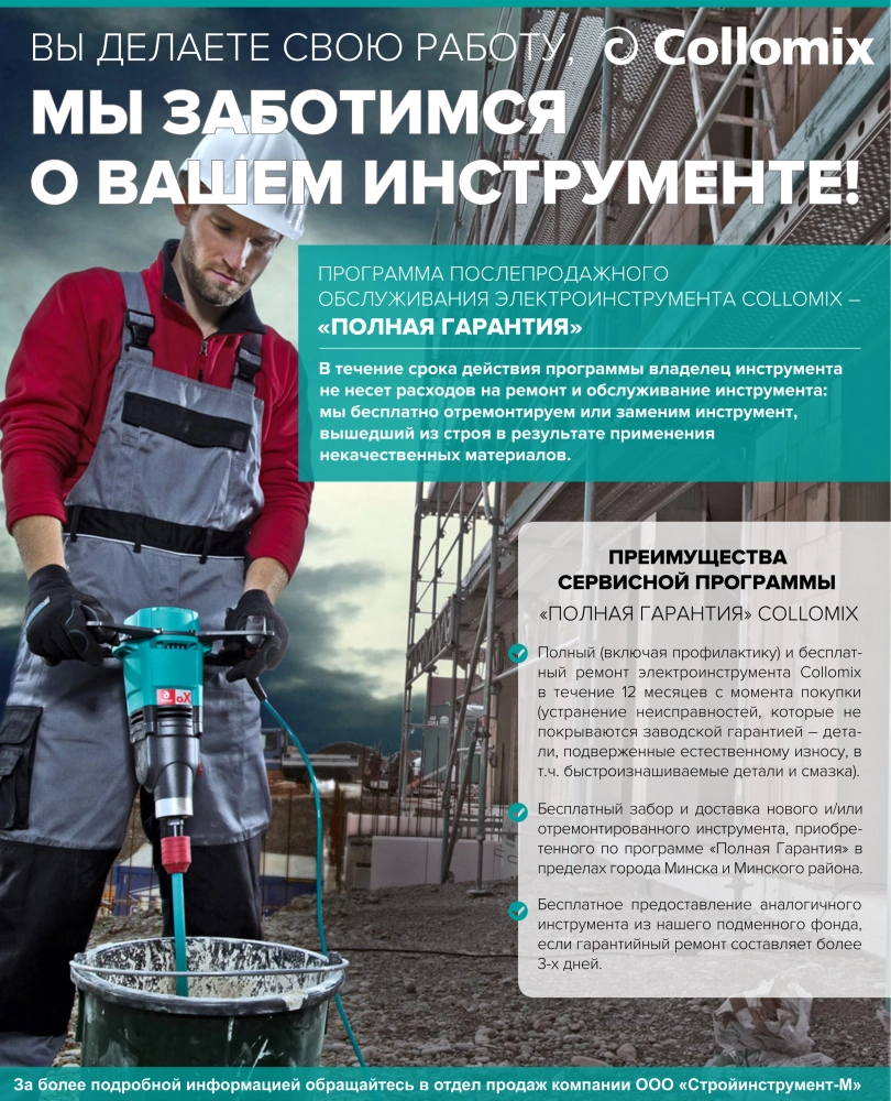 -Полный (включая профилактику) и бесплатный ремонт электроинструмента Collomix