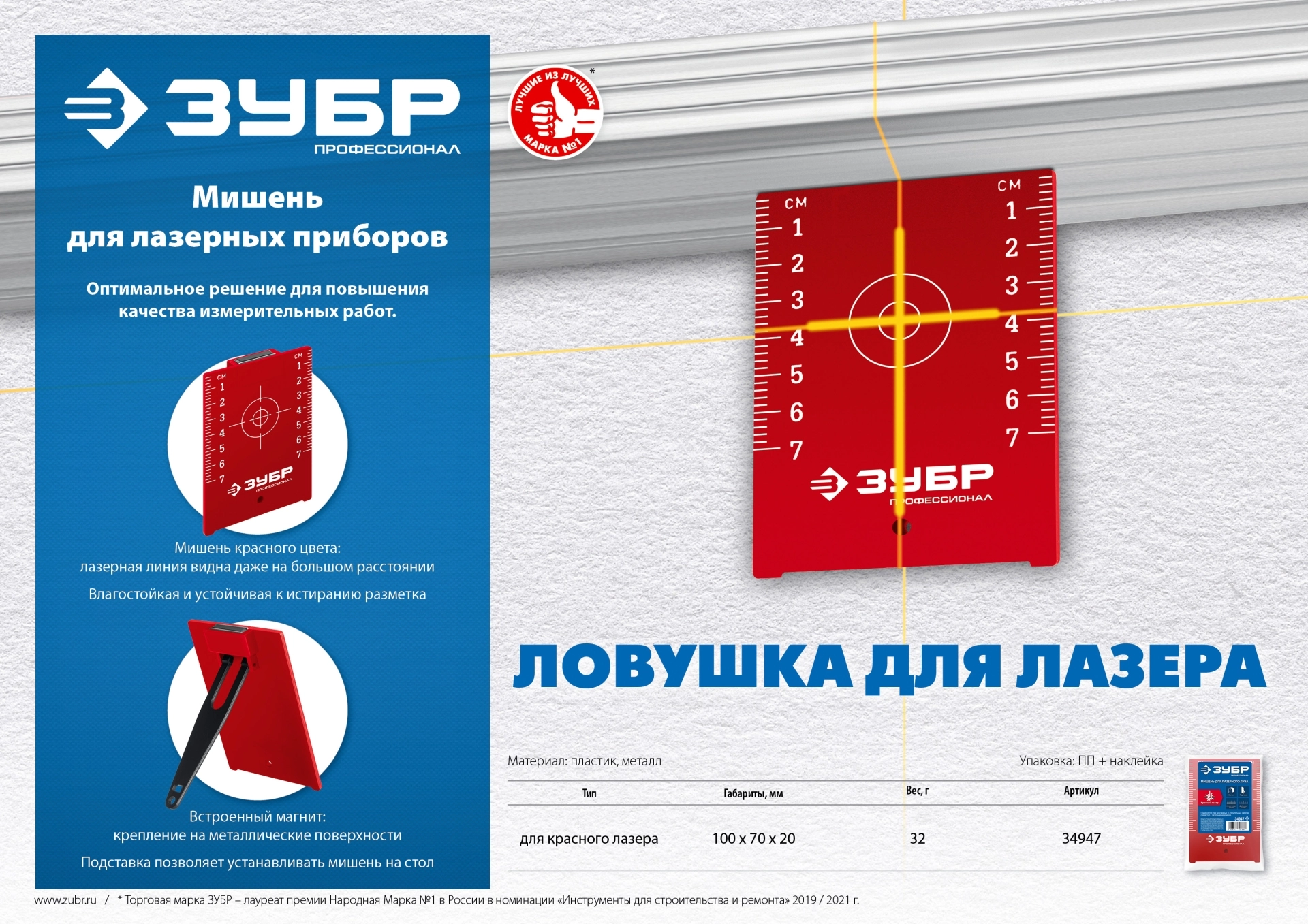 Прочная и надежная. Встроенный магнит позволяет быстро крепить к металлической поверхности. Встроенная подставка- устанавливать на стол, а красный цвет помогает рассмотреть лазерный луч на большом расстоянии и поймать лазерную точку.