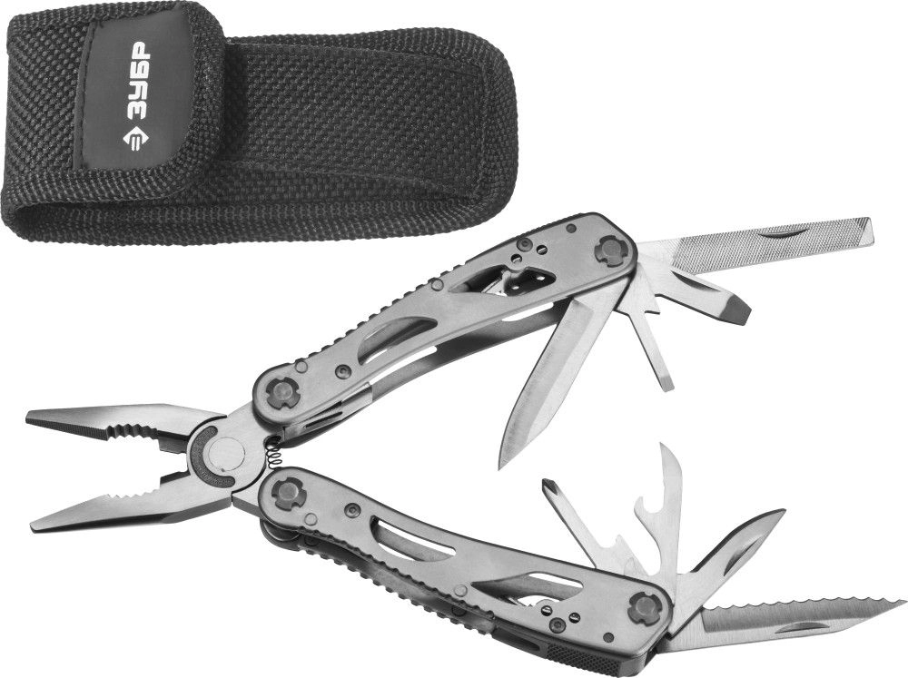 СТАНДАРТУровень качества. При классификации продуктов, имеющих схожее наименование, но обладающие различными потребительскими свойствами мы приняли следующий Вес факторов: 80% - подтвержденный ресурс, 15% - заявленная производительность/скорость, 5% - субъективные ощущения потребителя. ПодробнееМногофункциональный инструмент ЗУБР может применяться для решения широкого спектра задач. Большое количество функций, заключенных в данном инструменте делает его незаменимым не только в быту, но и в походах, на пикниках, охоте и рыбалке.- Все инструменты изготовлены из высококачественной нержавеющей инструментальной стали; - Эргономичная рукоятка обеспечивает удобство и безопасность использования; - Режущие кромки ножей остро заточены для обеспечения легкости реза; - Нейлоновый чехол для удобства хранения и переноскиПроизводитель: Крафтул И/Е Гмбх, Альтер Поствег Штр., Лоенинген, Германия