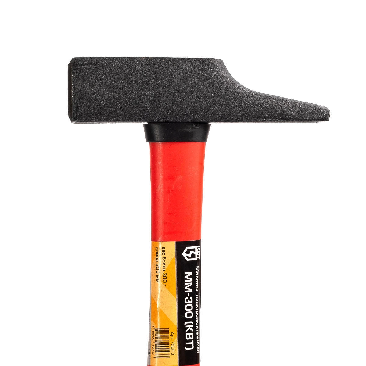 Молоток электромонтажника ММ-300, КВТ 75013 — молоток с удлиненным бойком и носком предназначен для ремонтно-сборочных работ. Удобная фиберглассовая рукоятка с нескользящим покрытием поглощает вибрации и обеспечивает комфортную работу