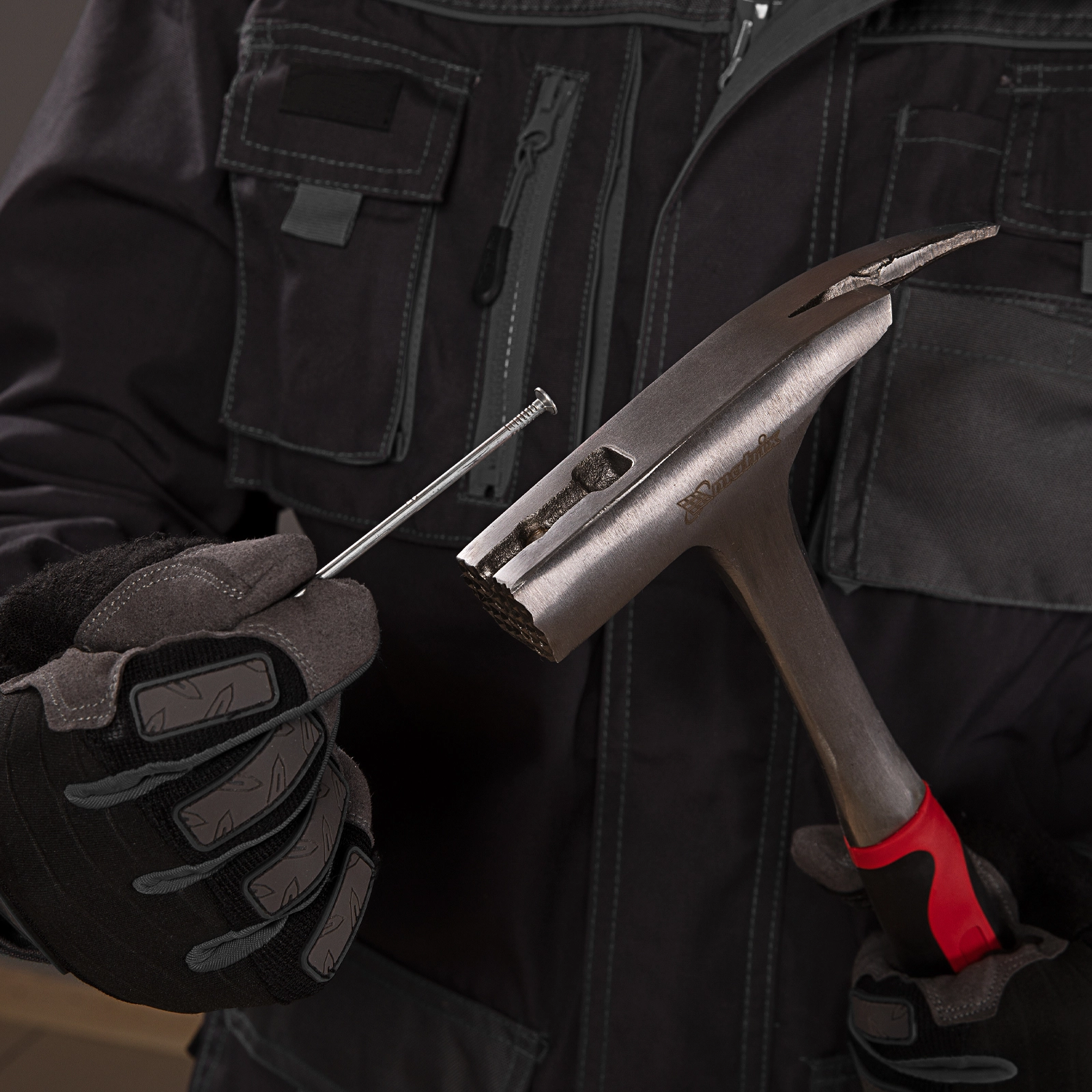 Насечки на рабочей поверхности бойка предотвращают соскальзывание, если удар по гвоздю нанесен под углом.
