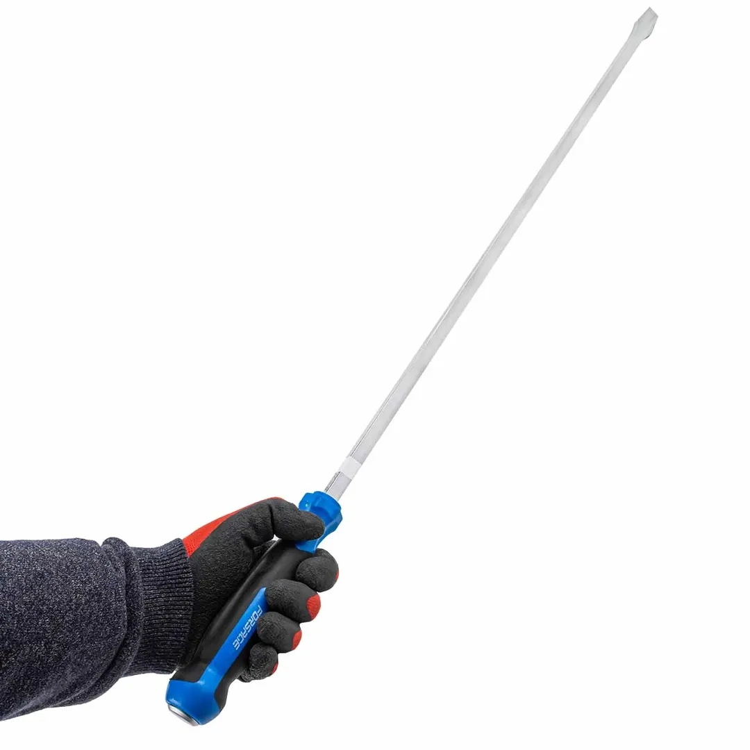 Усиленная лопатка монтировочная с рукояткой, длиной 900 мм от бренда Forsage - прочный инструмент для автомобиля, для гаража, для автосервиса, который используется для монтажных и демонтажных работ. Длина монтировки 900 мм, профиль квадратный 12 мм, ширина лопатки 20 мм.