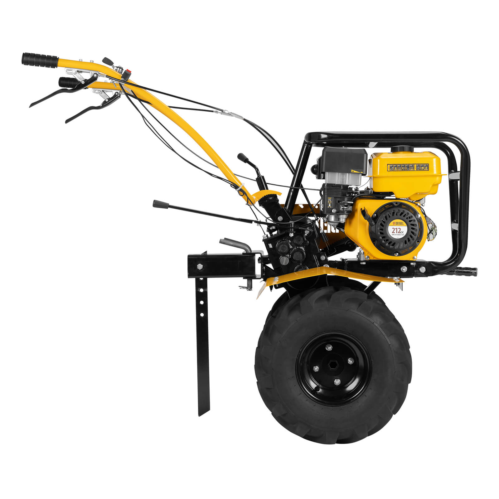 Бренд: DENZELМотоблок Denzel DPT-470S-PRO 56445 с ременным сцеплением, двигателем объемом 212 см3 и мощностью 7 л.с., с коробкой передач 4 вперед/2 назад и шкивом отбора мощности, комплектуется 24 фрезами (3х4). Предназначен для выполнения земляных работ: прополки, вспахивания, боронования грунта, перевозки грузов и т.д.