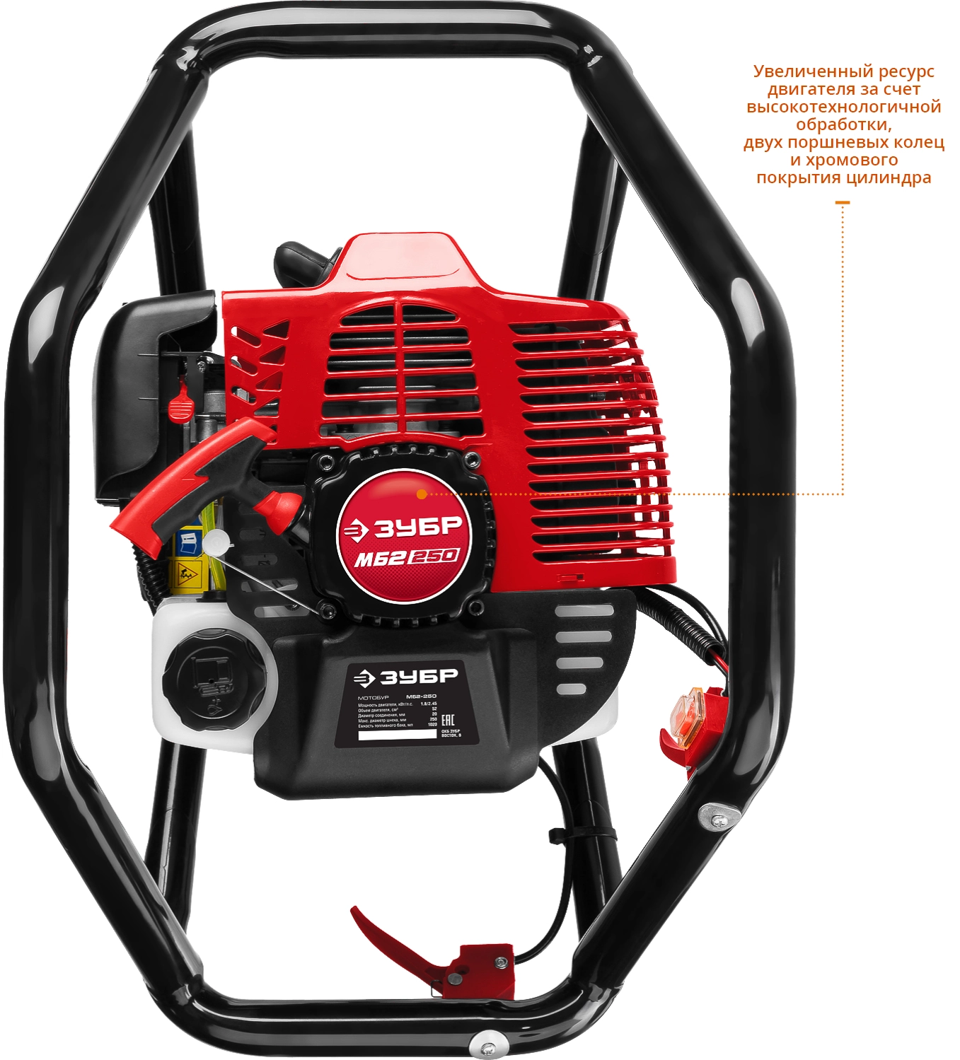 Мотобур (бензобур) ЗУБР МБ2-250 Н, предназначен для бурения мягких, твердых и мерзлых грунтов, а так же бурения льда при монтаже столбов, заборов, ограждений и других целей связанных с бурением грунта. Топливный насос для облегчения запуска. Воздушное охлаждение двигателя. Надежная рамная конструкция. Быстросъемное соединение шнека. Полупрозрачный топливный бак для контроля за расходом топлива. Система гашения вибрации. Емкость для приготовления рабочей смеси в комплекте. Инструмент управляется двумя операторами. Конструкция рукоятки позволяет работать как одному оператору, так и двум одновременно, что повышает эффективность бурения и обеспечивает дополнительную сохранность двигателя при работе и транспортировке. Шнек в комплекте.