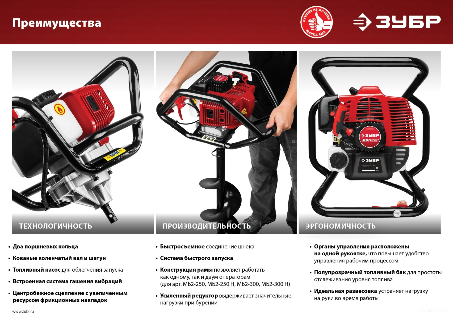 ПроизводителиМотобур (бензобур) со шнеком, d=60-300мм, 71см3, 2 оператора (МБ2-300 Н) ЗУБР