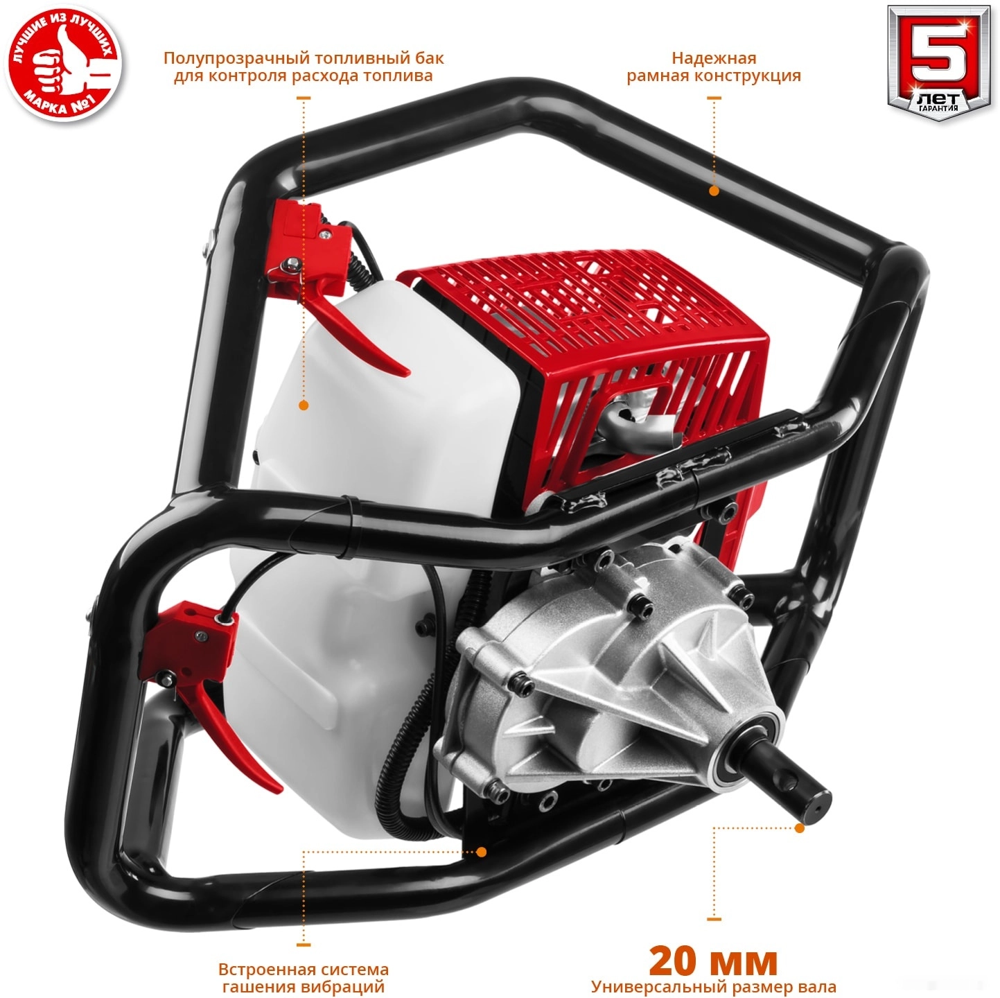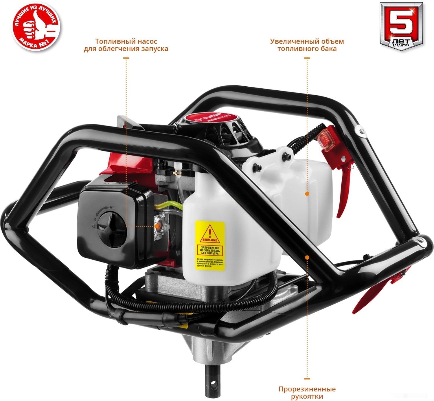 Мощный инструмент для бурения отверстий в мягких, твердых, мерзлых грунтах, а также во льду. Мощный 2-х тактный двигатель и универсальная конструкция рамы позволяют быстро и эффективно произвести необходимые работы по бурению. Конструкция рамы мотобура позволяет работать как одному, так и двум операторам, что повышает эффективность бурения, кроме того обеспечивает дополнительную сохранность двигателя при работе и транспортировке.