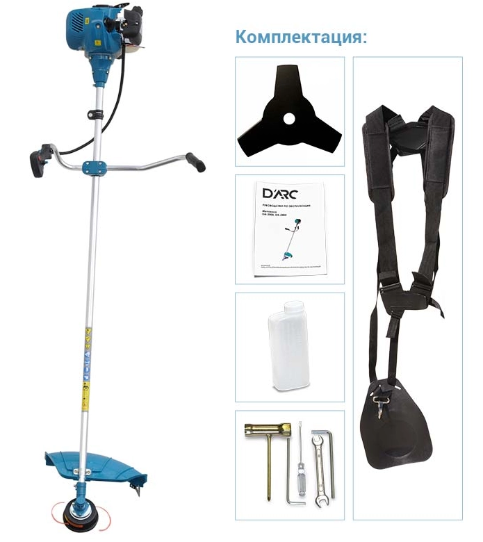 ПроизводителиМотокоса D'ARC DA-2001 (2.0 кВт, autocut25, нож 3Т, двуплечный ремень, лёгк. старт), DARC