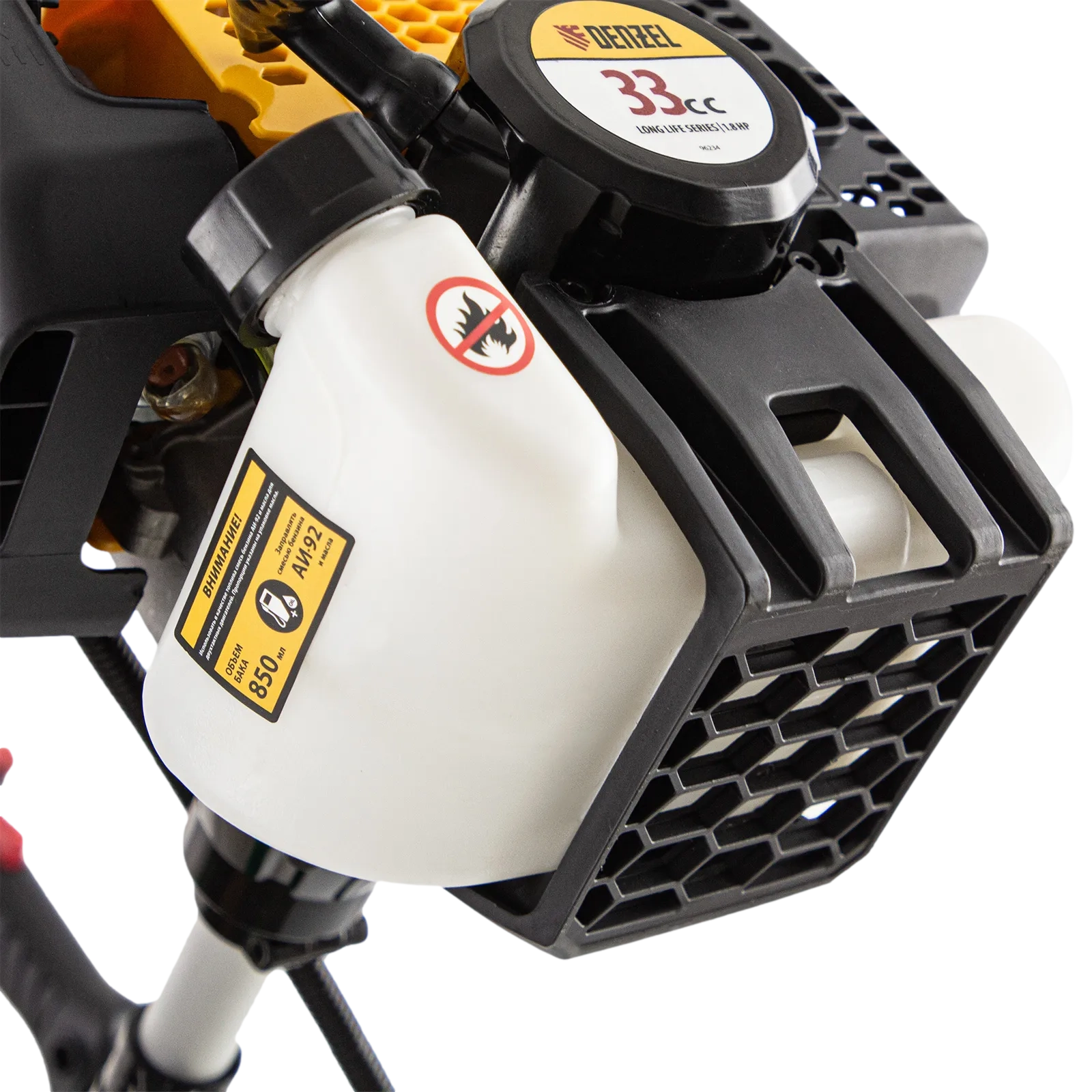 - Удобный контроль уровня топлива — бак выполнен из полупрозрачного пластика.