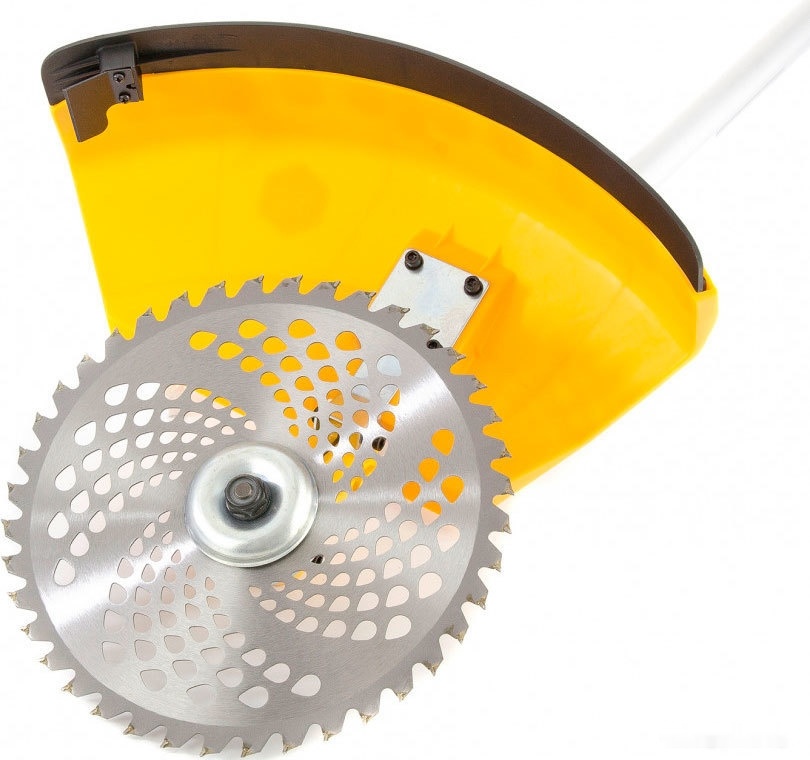 Ширина прохода пильным диском — 255 см, а лески — 420 см, поэтому можно обработать большой участок за короткое время.