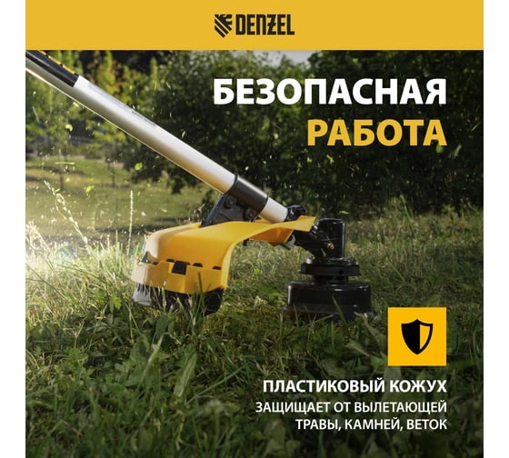 Защитный кожух предотвращает вылет камней, травы и грязи на пользователя.