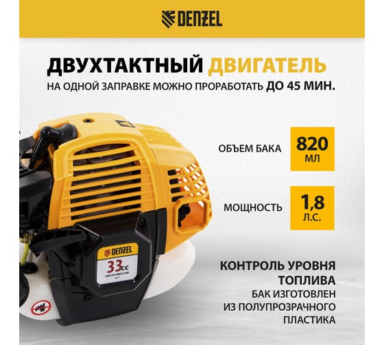 ПроизводителиМотокоса (триммер бенз.) DR-33S, 33 см3, разъемная штанга, состоит из 2 частей Denzel