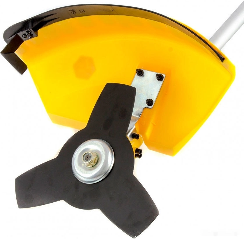 Пластиковый кожух защищает от вылетающей травы, попадающих под нож камней и веток.