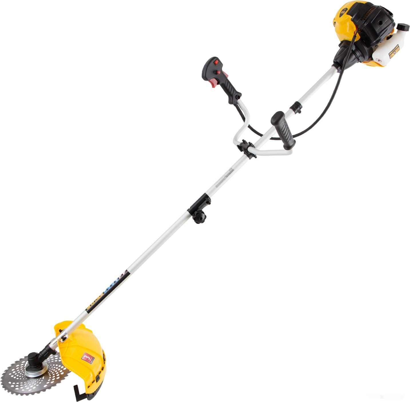 Комплектация: Триммер бензиновый - 1 шт, Катушка - 1 шт, Пильный диск 40Т - 1 шт, Одноплечевая подвесная система с защитой бедра - 1 шт, Дозатор для приготовления смеси - 1 шт, Набор крепежа - 1 шт, Набор инструментов - 1 шт, Руководство по эксплуатации с гарантийным талоном - 1 шт