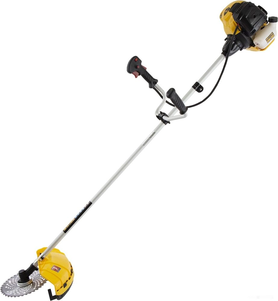 Комплектация: Триммер бензиновый - 1 шт, Катушка - 1 шт, Пильный диск 40Т - 1 шт, Одноплечевая подвесная система с защитой бедра - 1 шт, Дозатор для приготовления смеси - 1 шт, Набор крепежа - 1 шт, Набор инструментов - 1 шт, Руководство по эксплуатации с гарантийным талоном - 1 шт