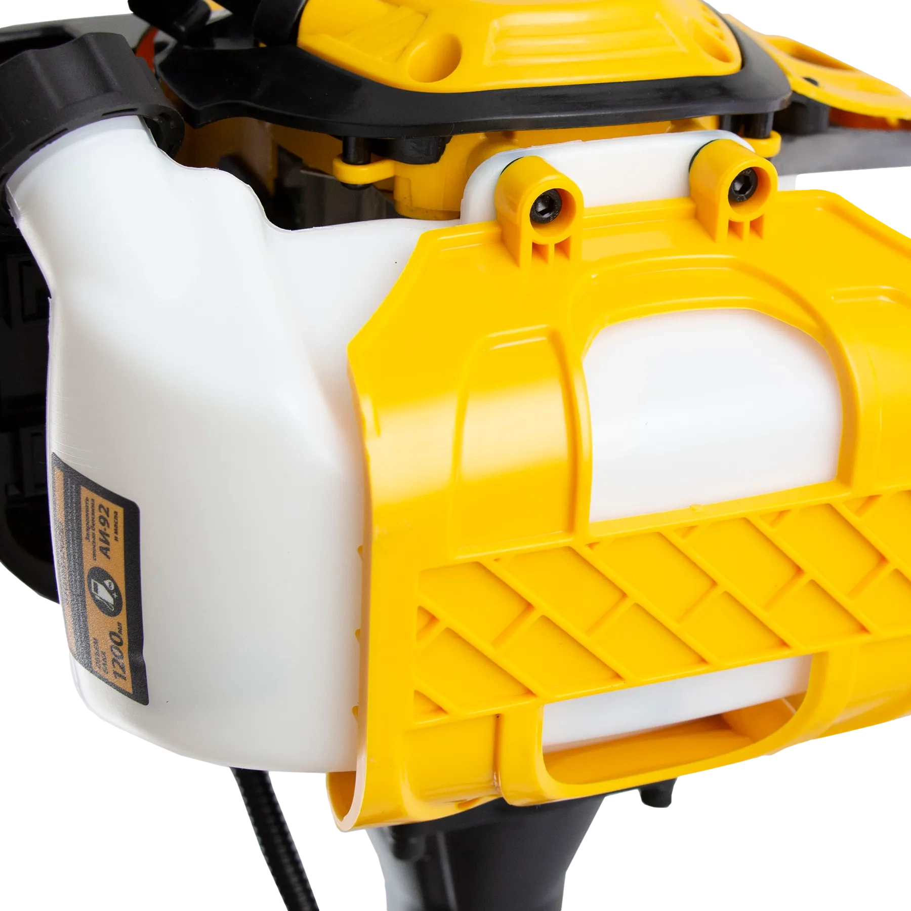 - Безопасность — клавиша блокировки газа предотвращает случайный запуск двигателя, прочный кожух исключает вылетание травы, веток и камней на пользователя.