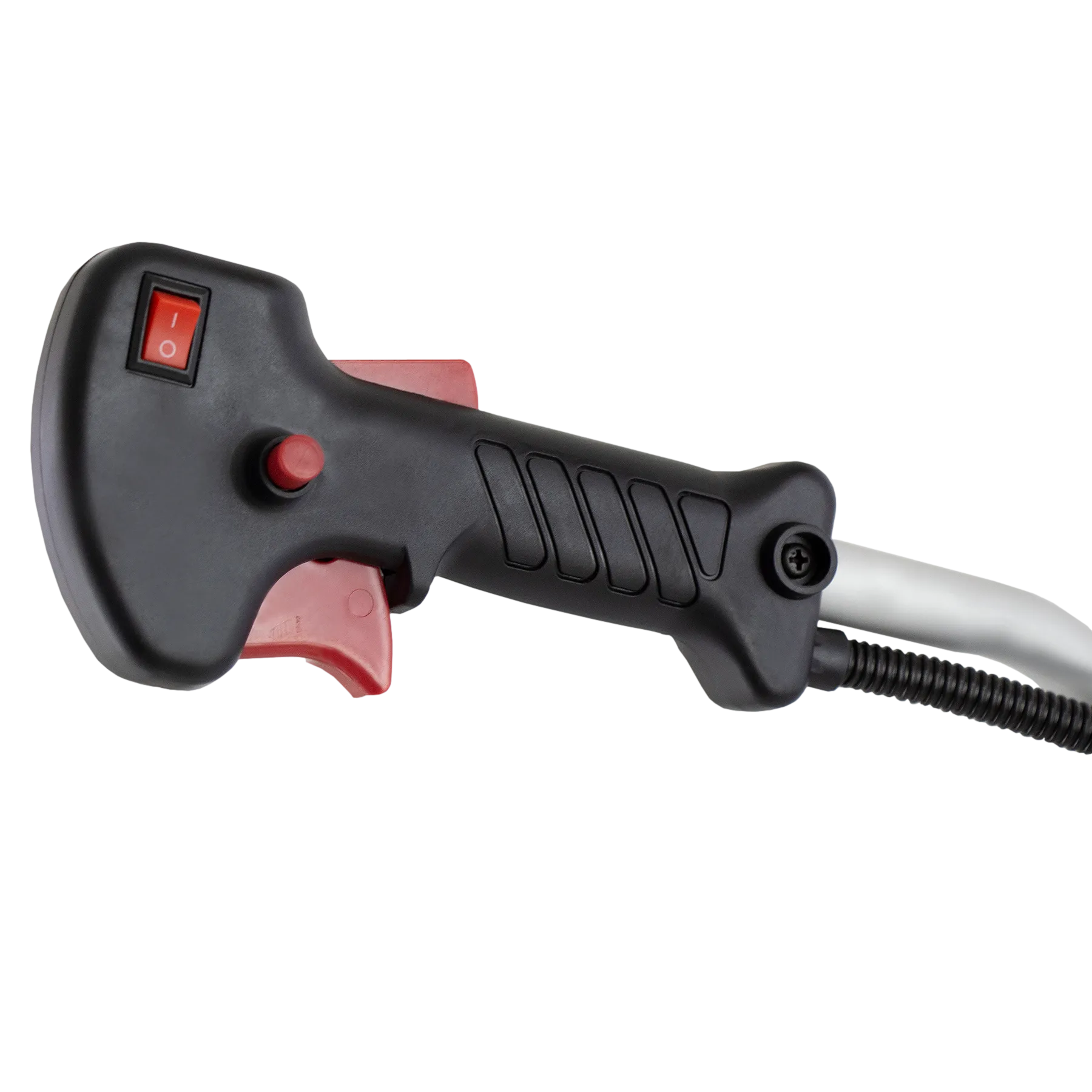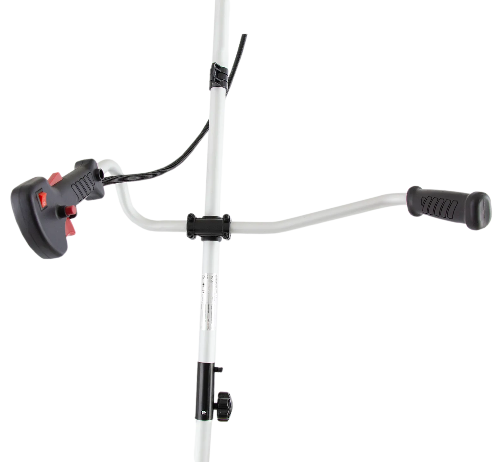 - Эргономичность — велосипедная рукоятка имеет асимметричную форму, поэтому триммер удобно удерживать и направлять.