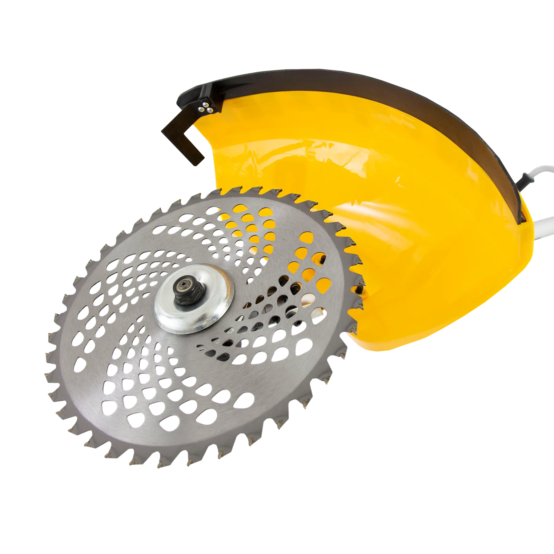 - Автоматическое укорачивание лески — специальный нож на защитном кожухе обрезает лишние «хвосты», предохраняя двигатель от перегрузки и перегрева.