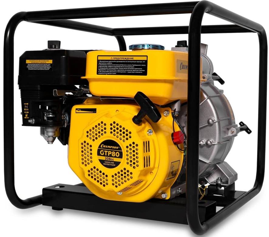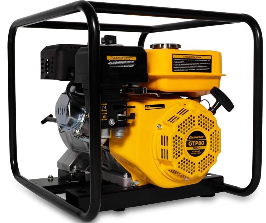 ПроизводителиМотопомпа бензиновая для грязной воды GTP80 (5,15 кВт 1300 л/мин вход/выход 76мм) CHAMPION