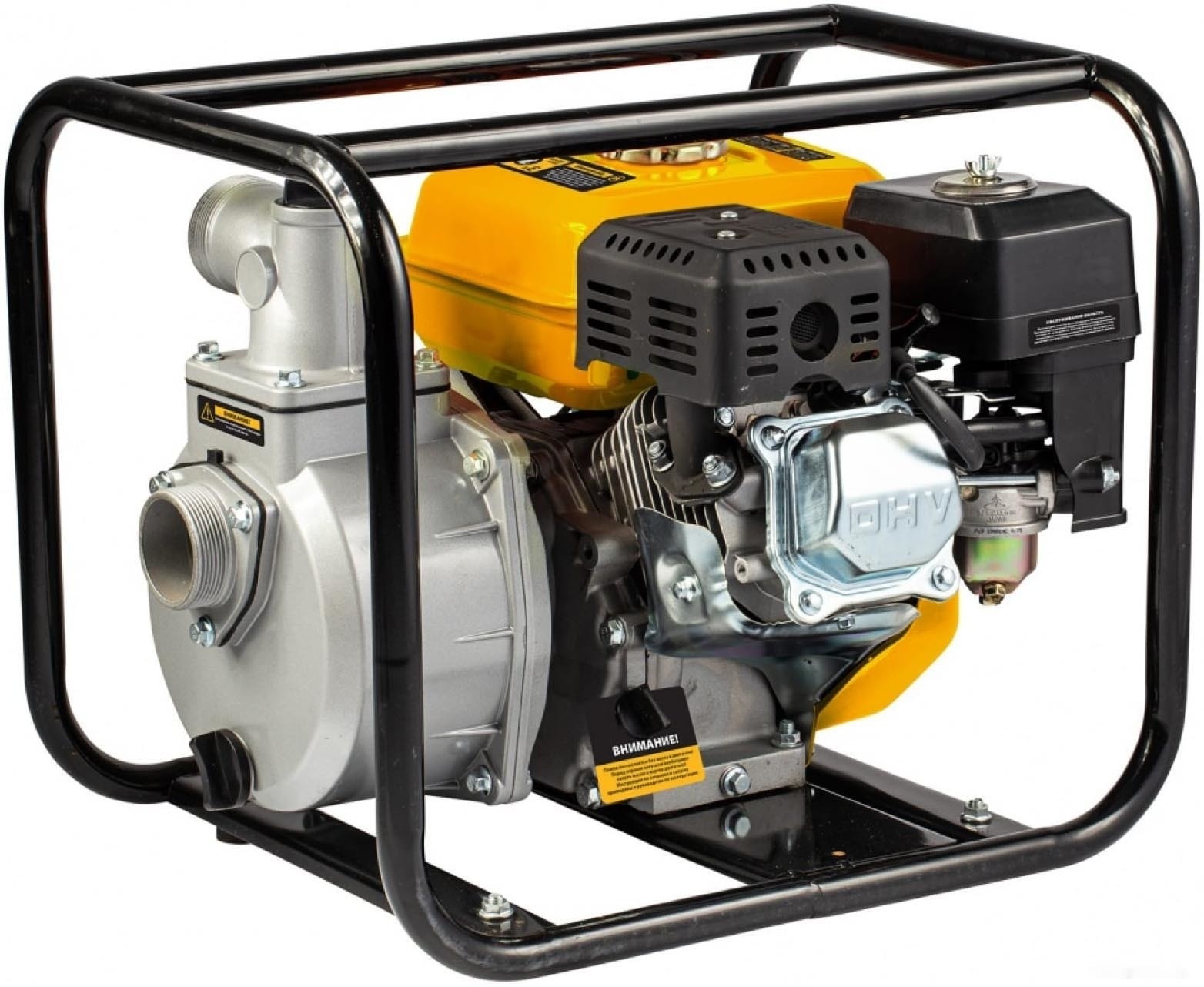 Прочная конструкция — усиленная рама с широким основанием защищает мотопомпу от повреждений и обеспечивает устойчивость даже на неровной поверхности.