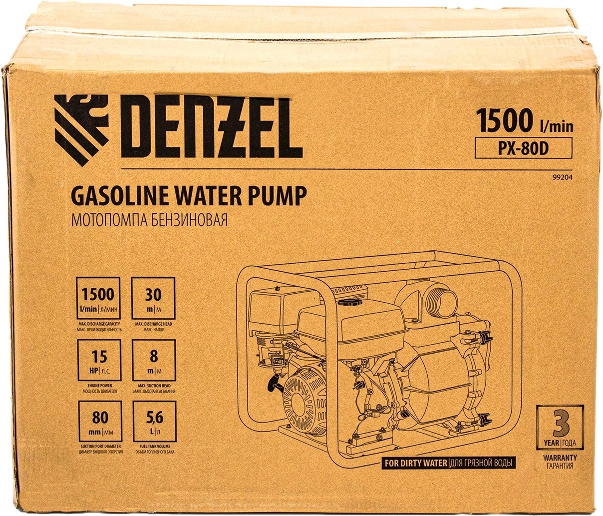 ПроизводителиМотопомпа для грязной воды PX-80D, 15 л.с., 3", 1500 л/мин, глуб 8 м,напор 30 м Denzel