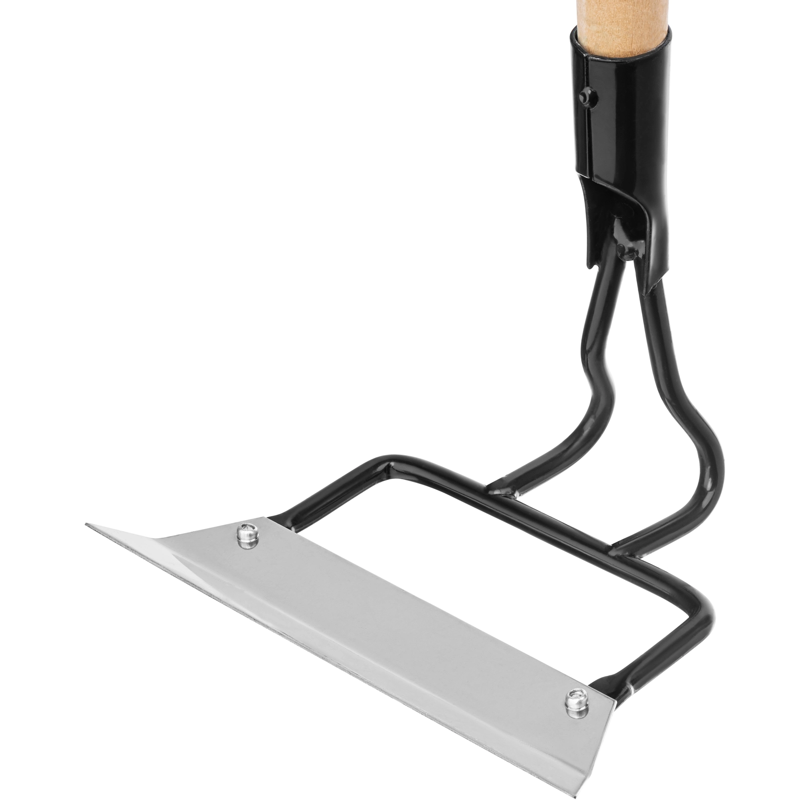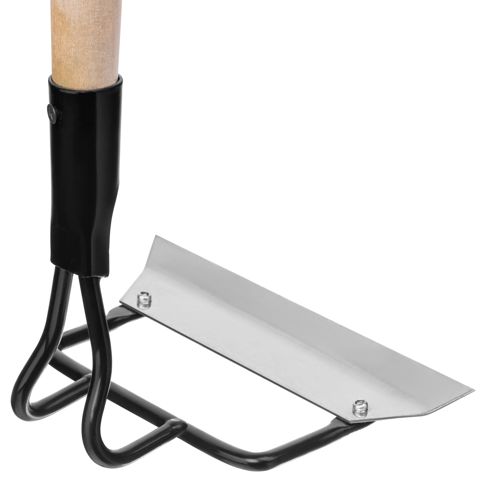 Режущая кромка остро заточена, поэтому мотыга легко срезает сорняки и рыхлит даже плотную почву.