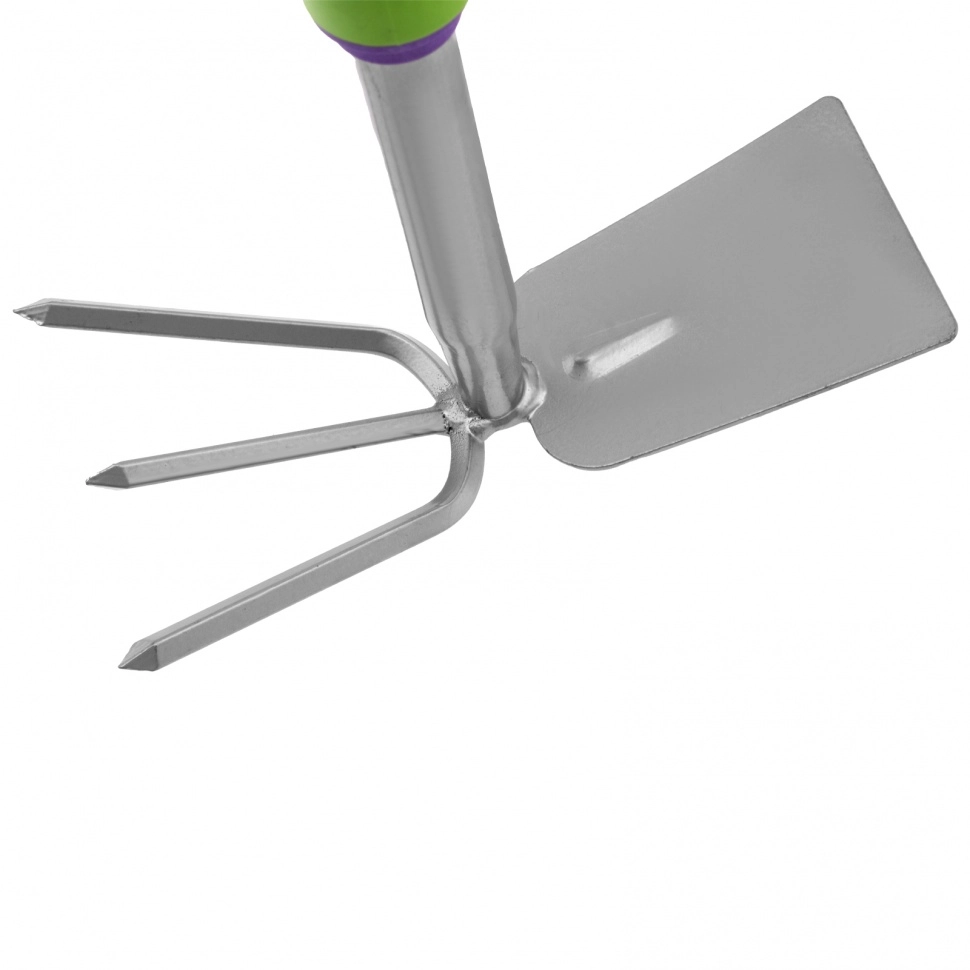 Она состоит из зубчатой и трапециевидной сторон для эффективного пропалывания, рыхления и нарезания лунок.