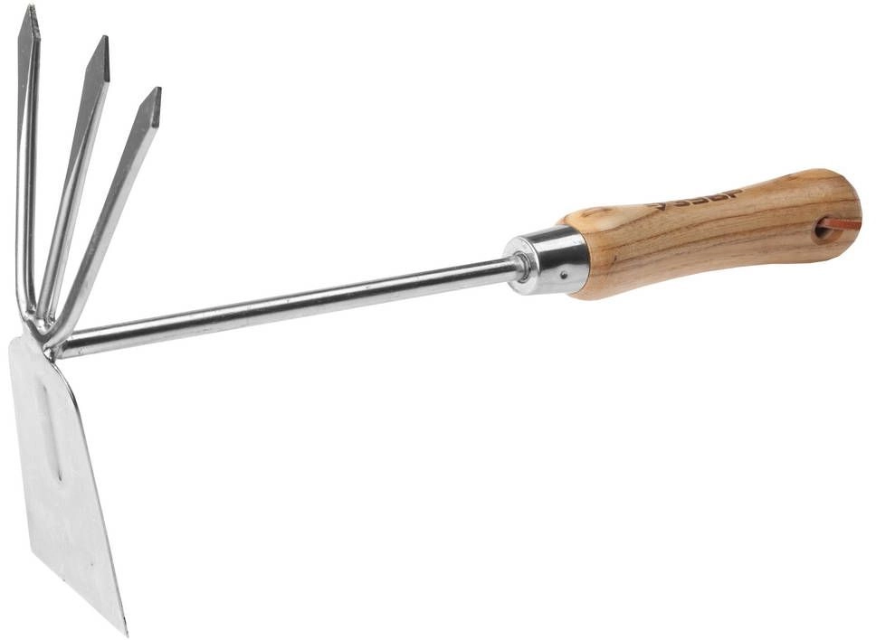 ПРОФИУровень качества. При классификации продуктов, имеющих схожее наименование, но обладающие различными потребительскими свойствами мы приняли следующий Вес факторов: 80% - подтвержденный ресурс, 15% - заявленная производительность/скорость, 5% - субъективные ощущения потребителя. ПодробнееКод товара: 0028120(0)Мотыжка комбинированная объединяет в себе 2 инструмента - мотыгу и культиватор. Этот универсальный инструмент применяется для рыхления и аэрирования почвы, прополки растений, сбора мусора. Рабочая часть - двухсторонняя, состоит из грабелек с тремя зубьями и мотыжки. Закалённая нержавеющая сталь и рукоятка из твёрдой древесины высшего сорта гарантируют продолжительный срок службы инструмента. На рукоятке имеется специальная петелька для подвешивания и удобного хранения.Мотыжка комбинированная объединяет в себе 2 инструмента - мотыгу и культиватор. Этот универсальный инструмент применяется для рыхления и аэрирования почвы, прополки растений, сбора мусора. Рабочая часть - двухсторонняя, состоит из грабелек с тремя зубьями и мотыжки. Закалённая нержавеющая сталь и рукоятка из твёрдой древесины высшего сорта гарантируют продолжительный срок службы инструмента. На рукоятке имеется специальная петелька для подвешивания и удобного хранения.