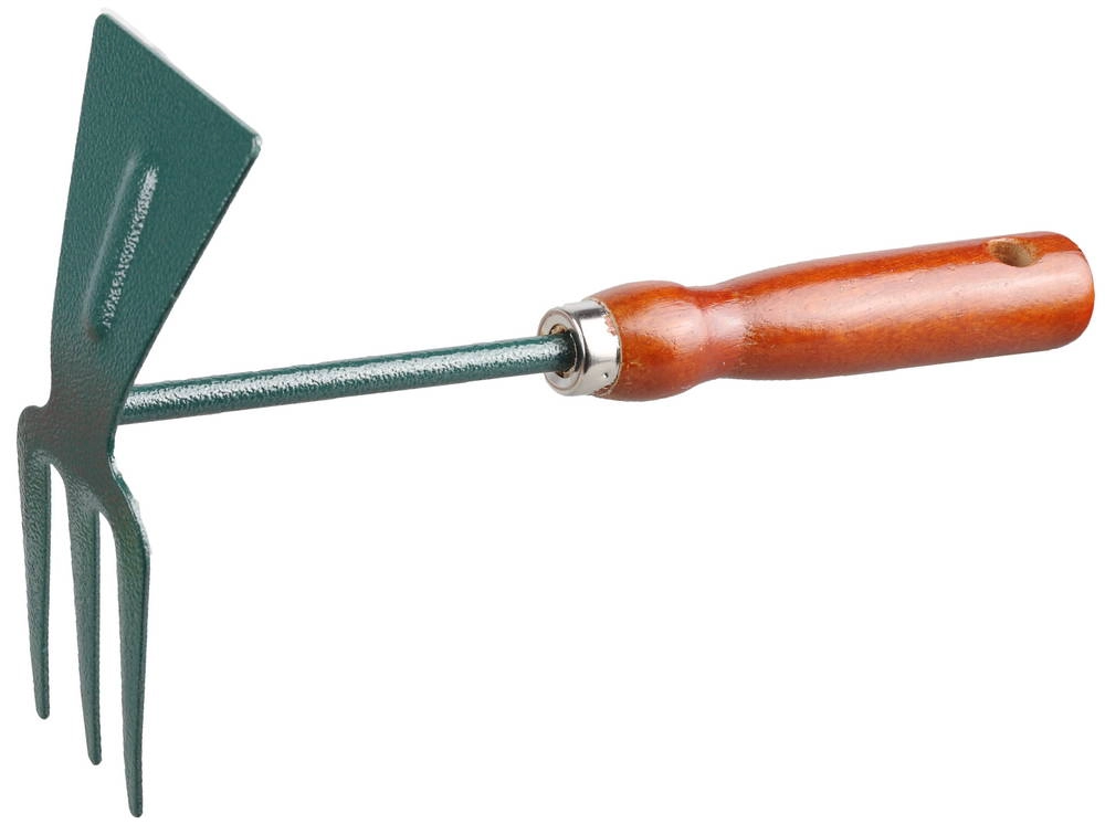 Рабочая часть всех изделий выполнена из высококачественной углеродистой стали с антикоррозионным покрытием повышенной стойкости Hammertone. Рукоятки изготовлены из первосортной древесины, отполированы и оснащены отверстием для удобства хранения. Применяется для прополки растений и рыхления почвы.
