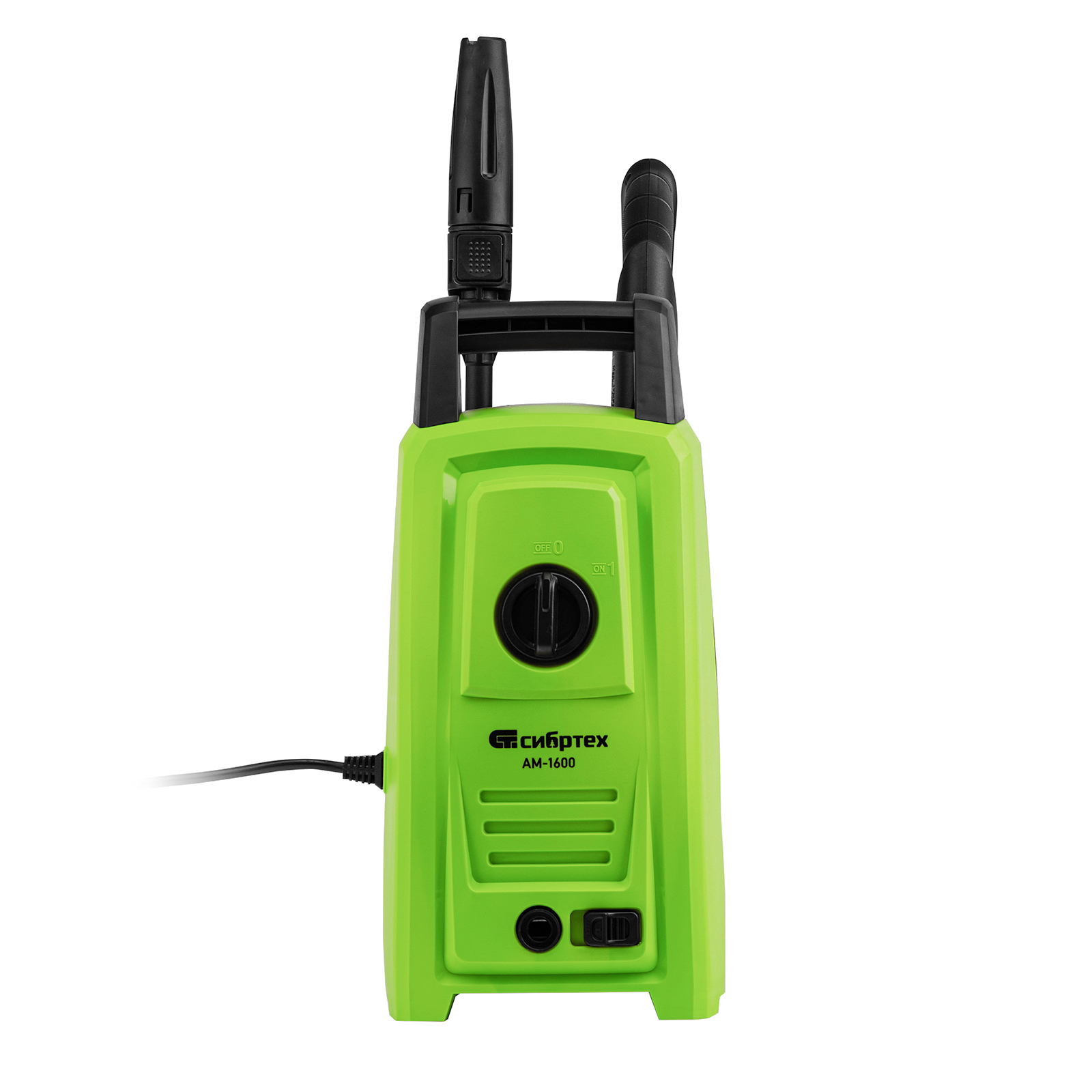 Переносная моечная машина высокого давления Сибртех AM-1600 58224 мощностью 1600 Вт и производительностью 330 л/ч подает струю воды под давлением 130 бар.