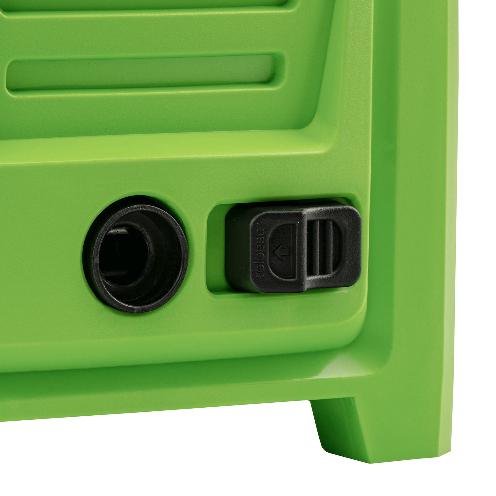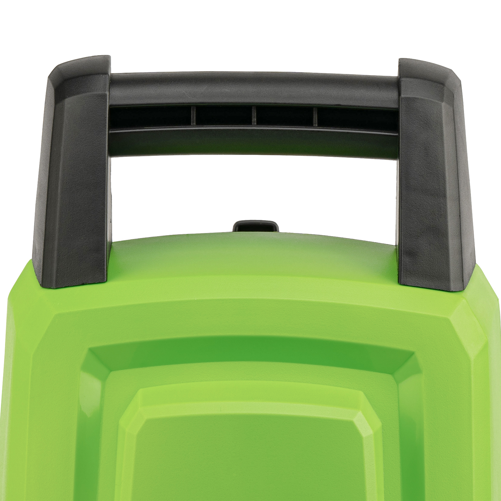 Продуманное хранение и транспортировка — на корпусе имеется удобная ручка, для кабеля и шланга предусмотрены специальные кронштейны.