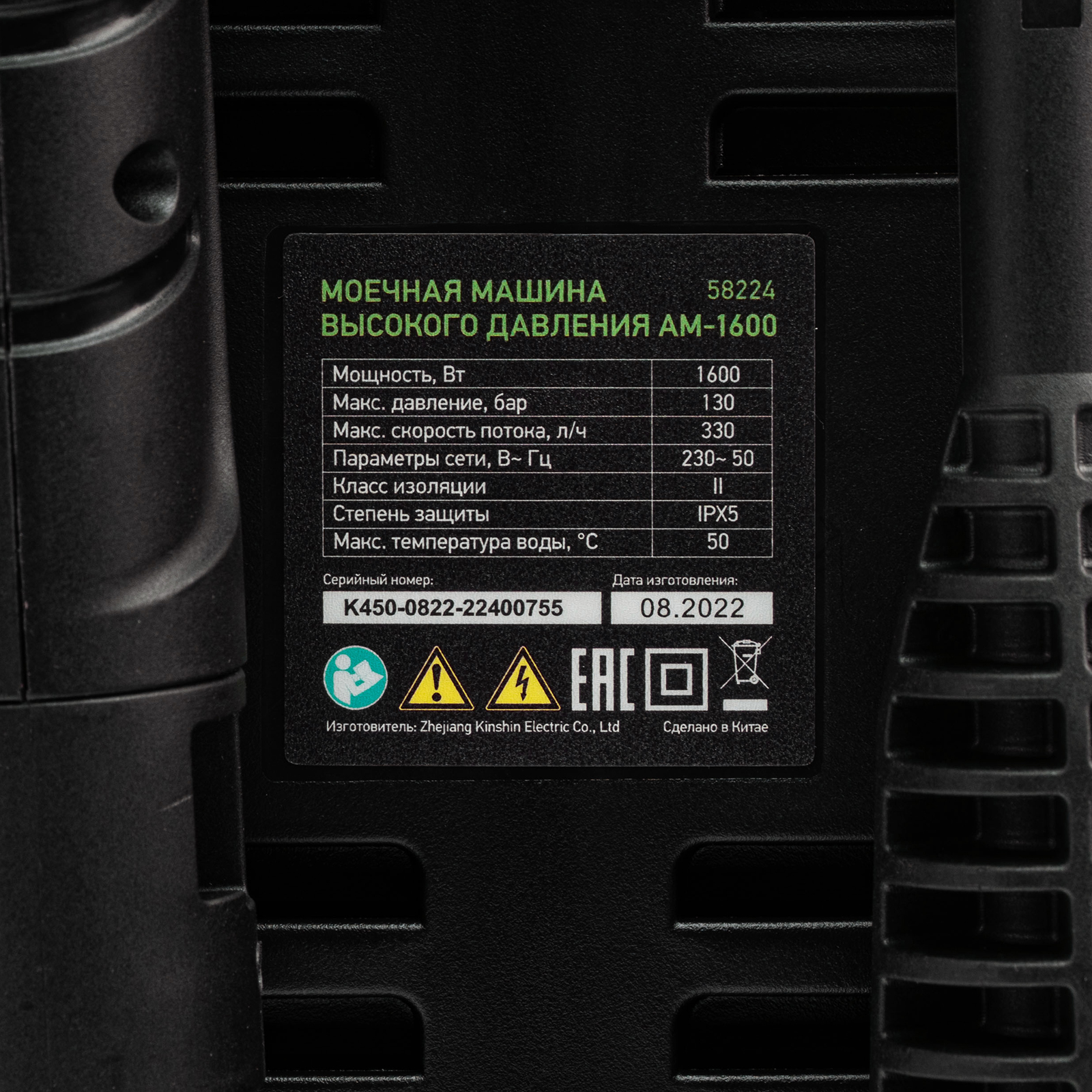 ПроизводителиМойка высокого давления АМ-1600, 1600 Вт, 130 бар, 330 л/ч, переносная Сибртех