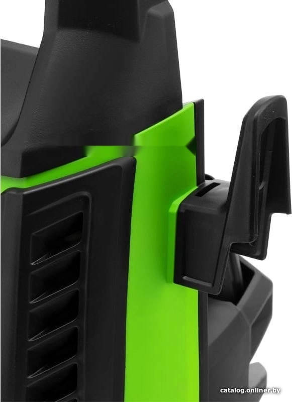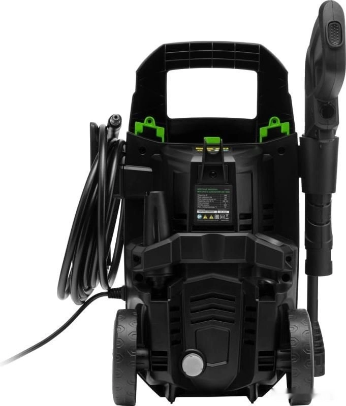Продуманное хранение и транспортировка — машина снабжена удобной ручкой и колесами, для кабеля и шланга предусмотрены специальные кронштейны.