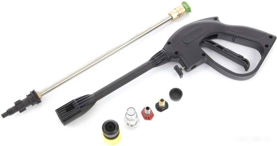 Комплектация: Мойка - 1 шт, Катушка со шлангом - 1 шт, Пистолет моечный - 1 шт, Стальная насадка-удлиннитель - 1 шт, Насадки-сопла (0°, 25° и "пена") - 3 шт, Входной штуцер с фильтром - 1 шт, Быстросъемный адаптер для входного шланга - 1 шт, Держатель пистолета - 1 шт, Игла для прочистки сопла - 1 шт, Руководство по эксплуатции - 1 штПроизводитель: ООО "Мир инструмента", Россия