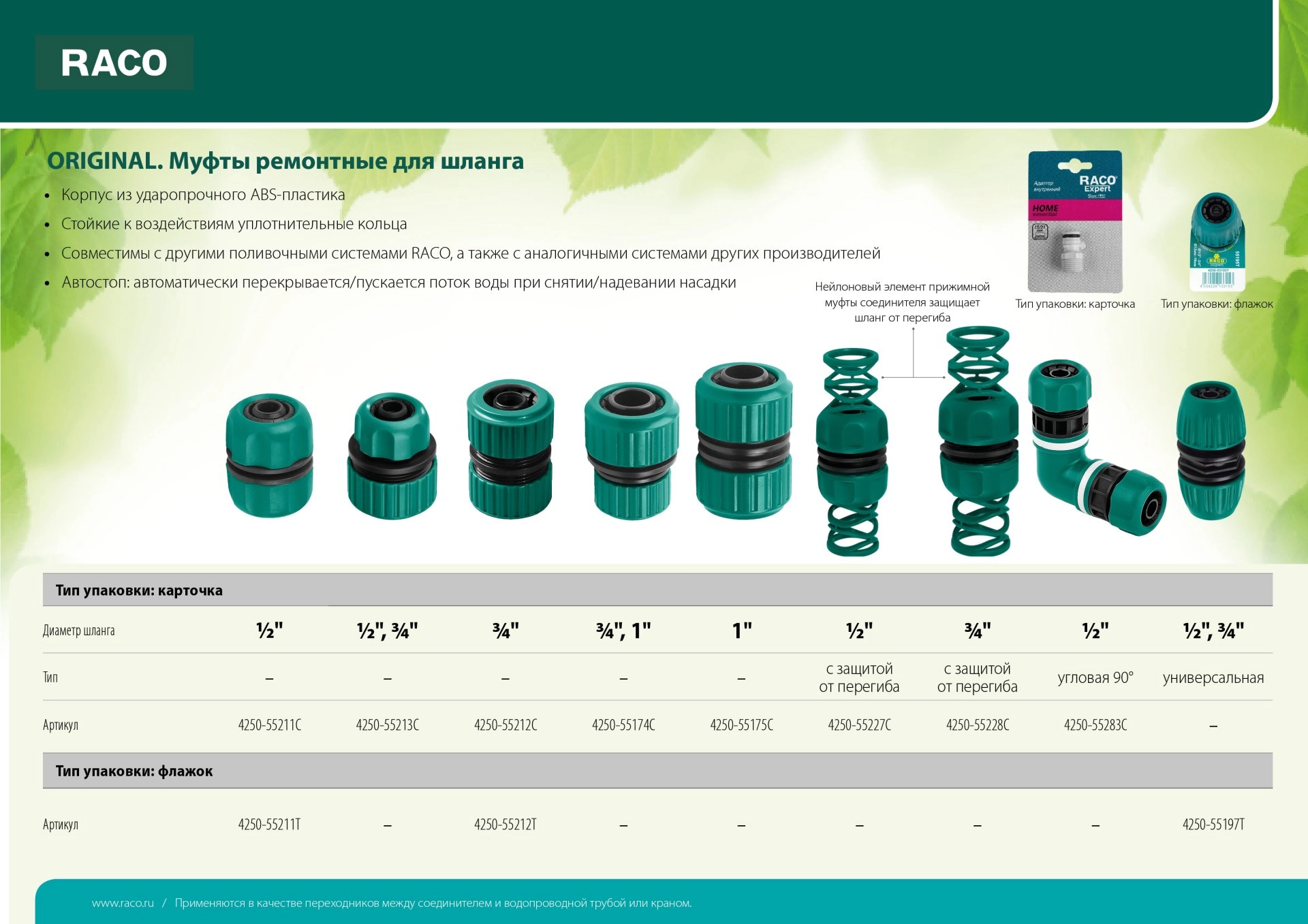 Изделия совместимы с другими поливочными системами RACO, а также аналогичными системами других производителей.