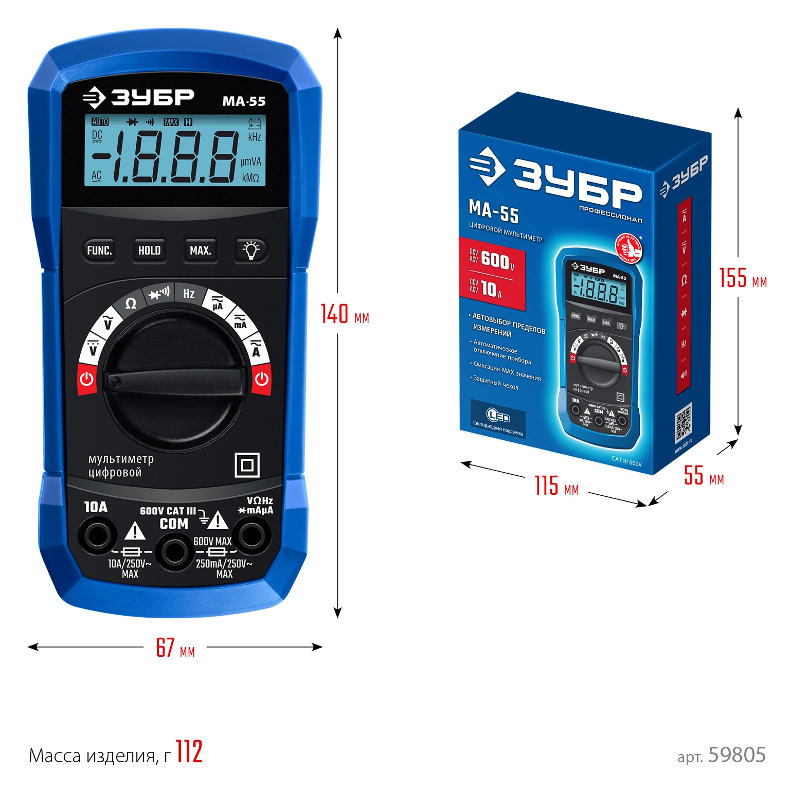 ПроизводителиМультиметр цифровой "МА-55" (59805) ЗУБР