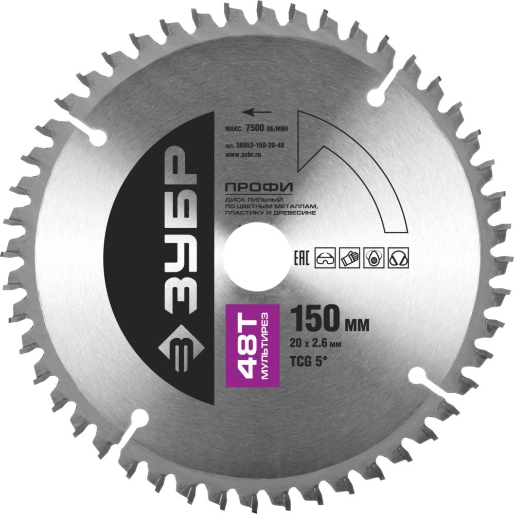 ПроизводителиДиск пильный 150х20х48 по алюминию "Мультирез" (36853-150-20-48) ЗУБР