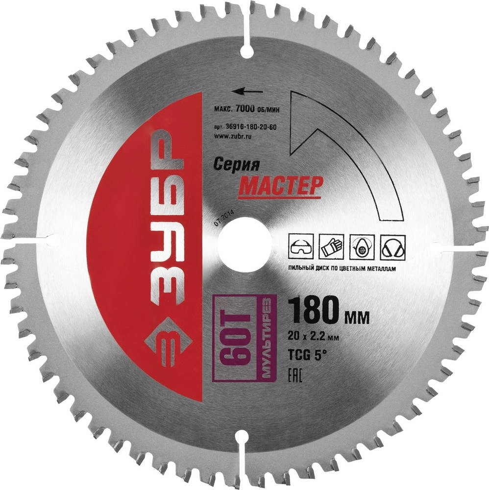 ПроизводителиДиск пильный 180х20х60 по алюминию "Мультирез" (36916-180-20-60) ЗУБР