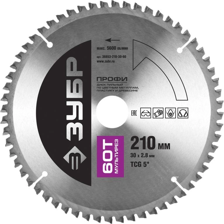 ПроизводителиДиск пильный 210х30х60 по алюминию "Мультирез" (36853-210-30-60) ЗУБР