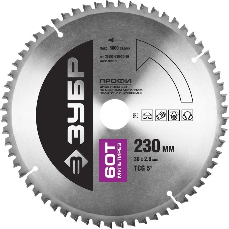 ПроизводителиДиск пильный 230х30х60 по алюминию "Мультирез" (36853-230-30-60) ЗУБР