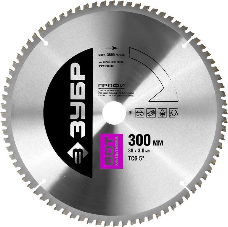 ПроизводителиДиск пильный 300х30х80 по алюминию "Мультирез" (36853-300-30-80) ЗУБР