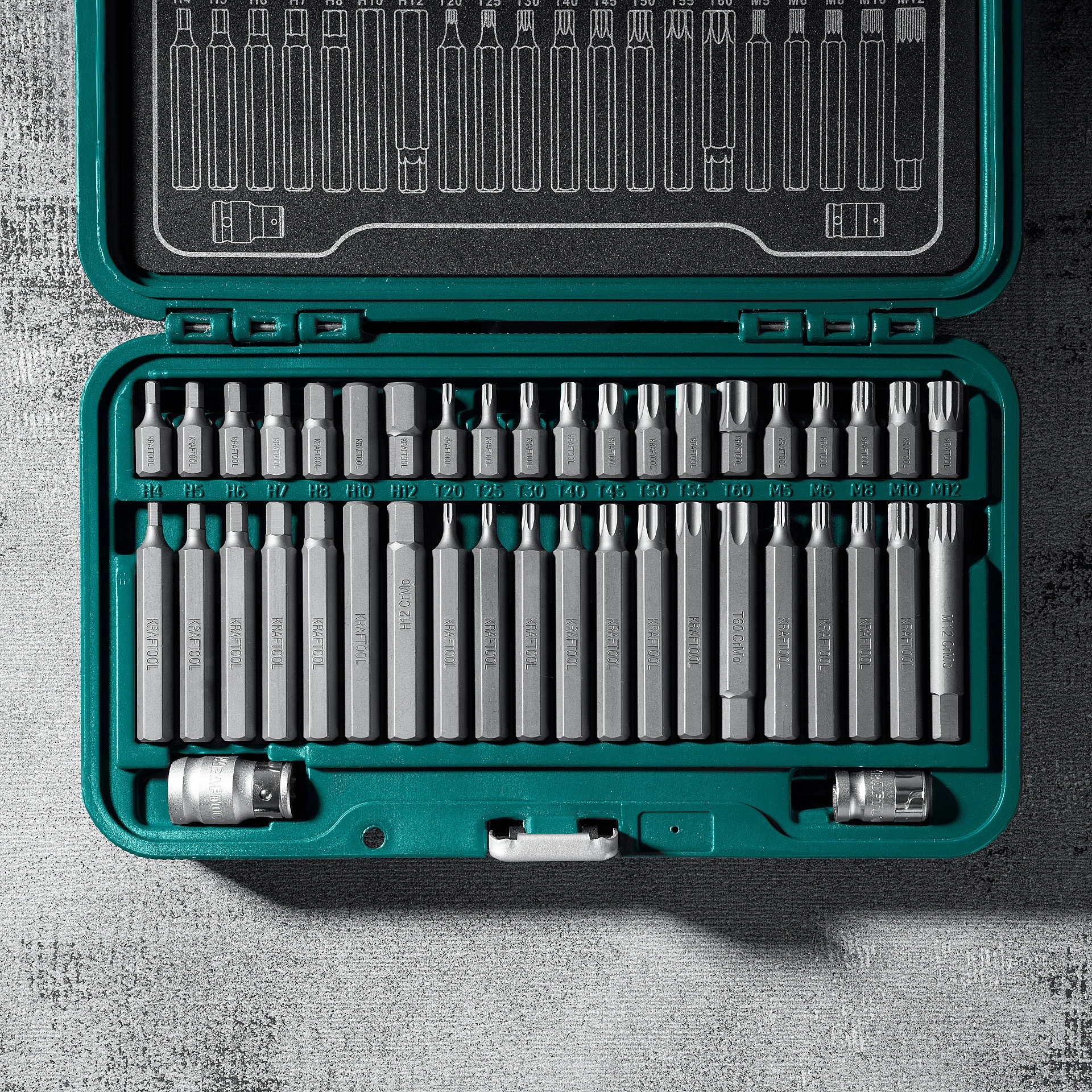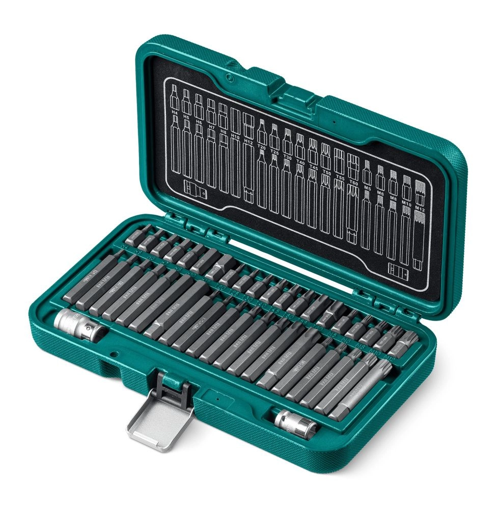 ПроизводителиНабор бит HEX, TX, SPLINE, 42 шт., хвостовик 10 мм под квадрат 1/2″ "THS-42" (26554) KRAFTOOL