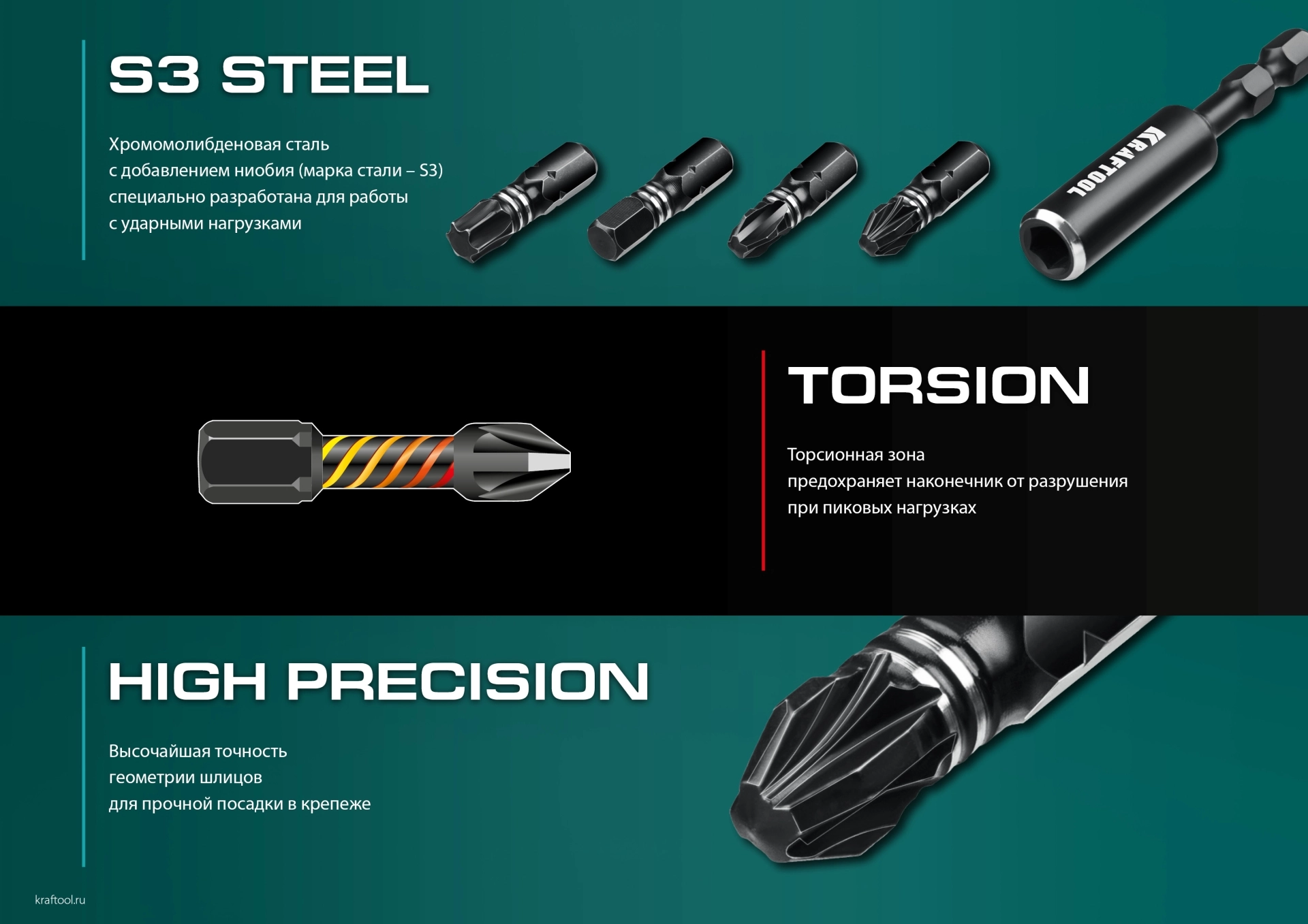 ПроизводителиНабор бит ударных торсионных, 32пр. Impact 32 (26066-H32) KRAFTOOL