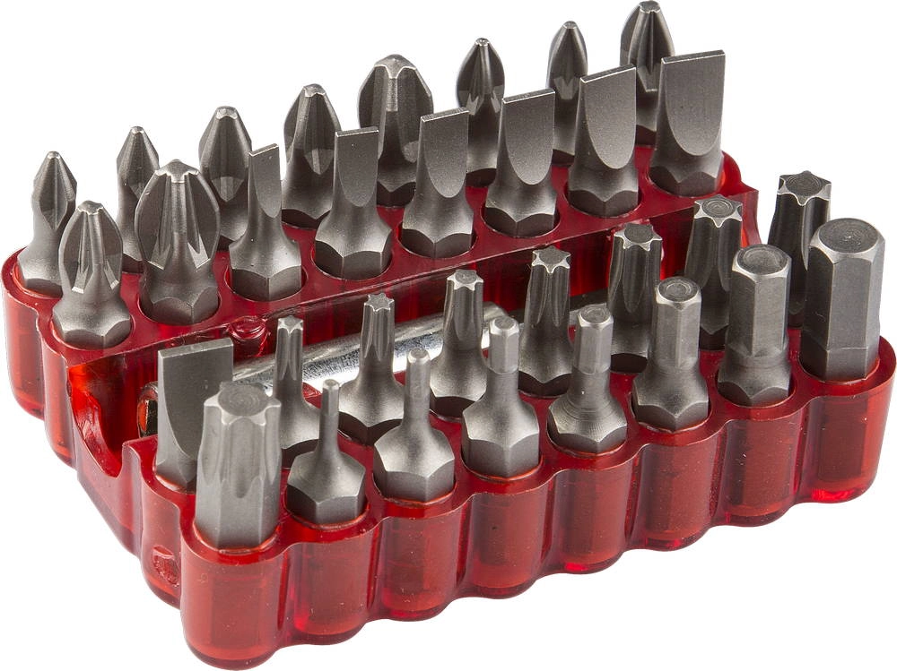 ПроизводителиНабор: Биты с магнитным адаптером, хромованадиевая сталь, 33 предмета, (26045-H33) ЗУБР