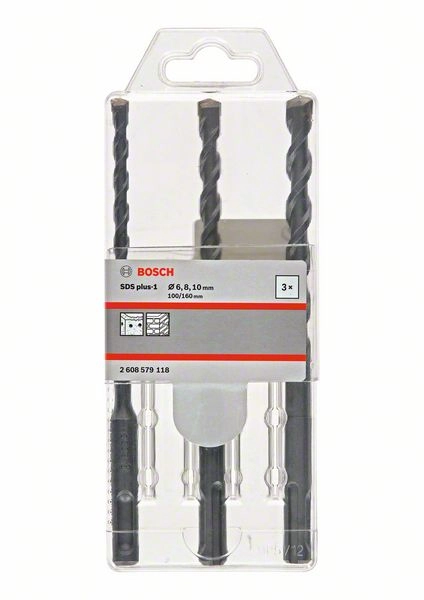 ПроизводителиНабор сверл SDS-plus-1, 3шт.: 6, 8, 10х160мм (2 608 579 118) BOSCH