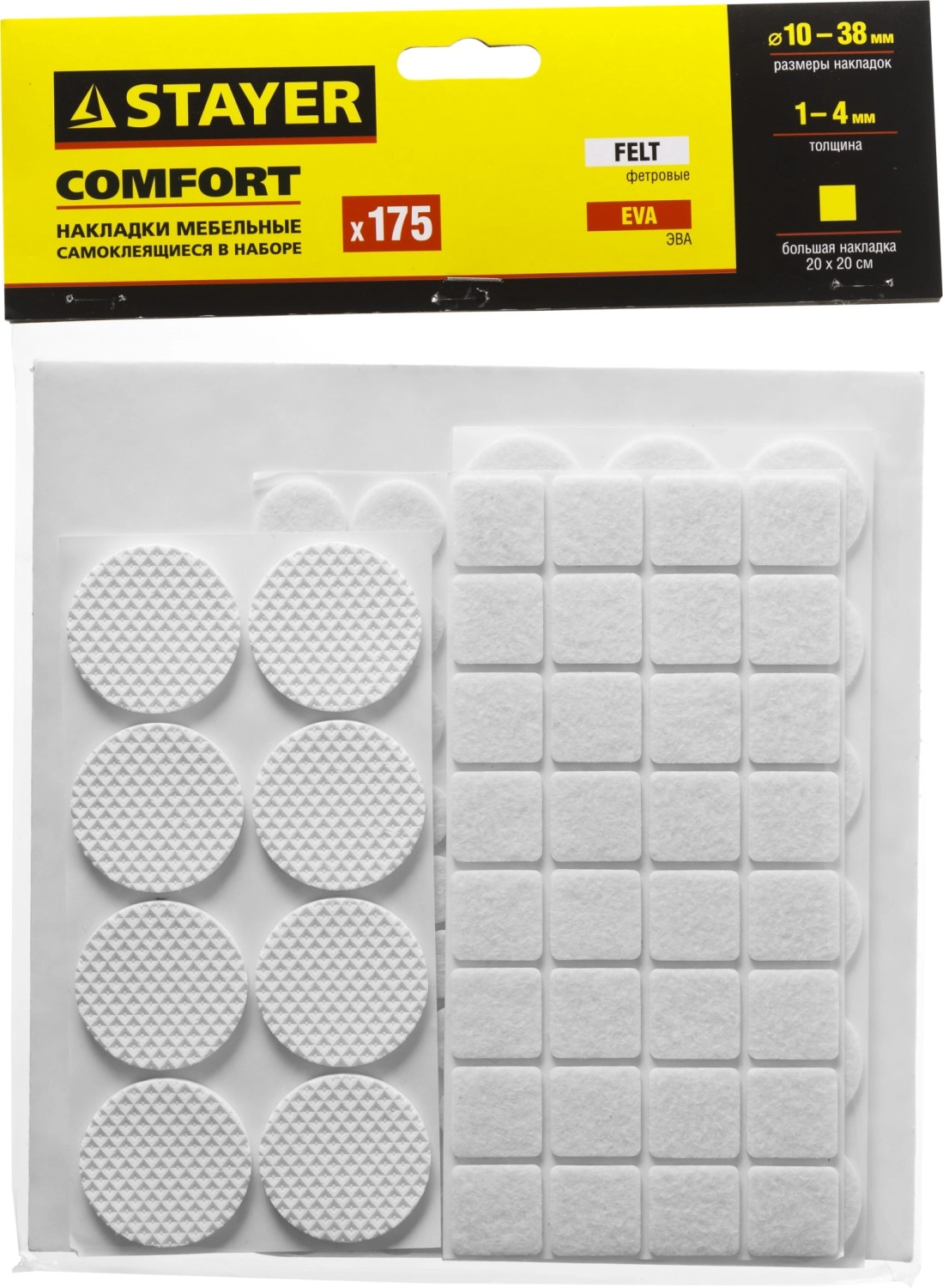 ПроизводителиНабор "COMFORT": Накладки самоклеящиеся на мебельные ножки, 175 шт, белые (40917-H175) STAYER