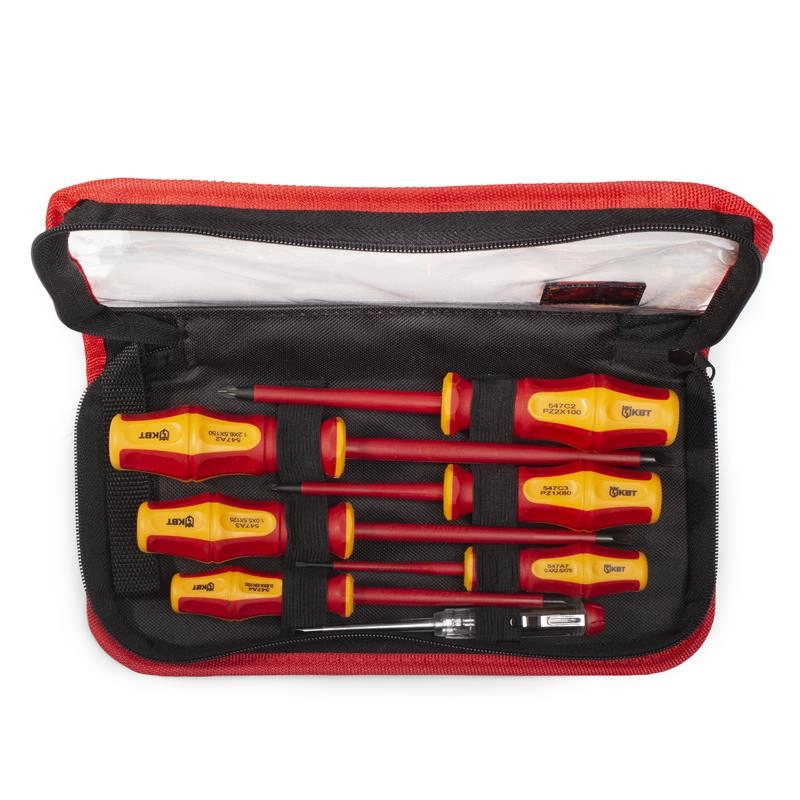 Набор диэлектрических отверток НИО-07, 7 шт., серия «Профи», КВТ 78618 — набор отверток с профилями шлиц и позидрив для электромонтажных работ под напряжением до 1000 В