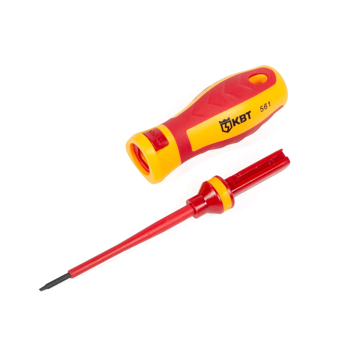 Диэлектрическая отвертка со сменными битами НИО-4412, 12 шт., серия «Профи», КВТ 78615 — профессиональный набор отверток для электромонтажных работ под напряжением до 1000 В