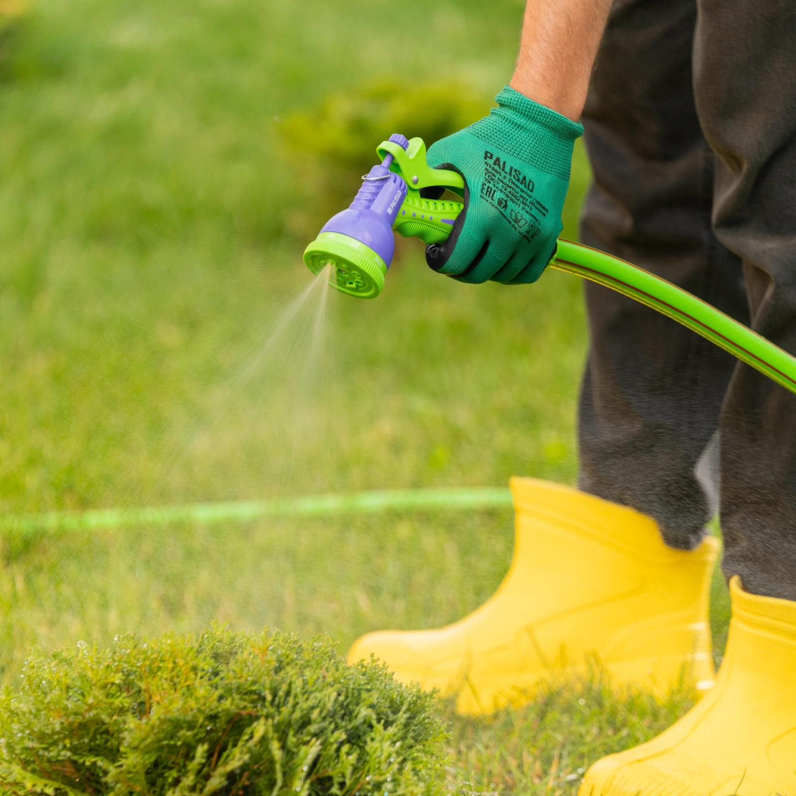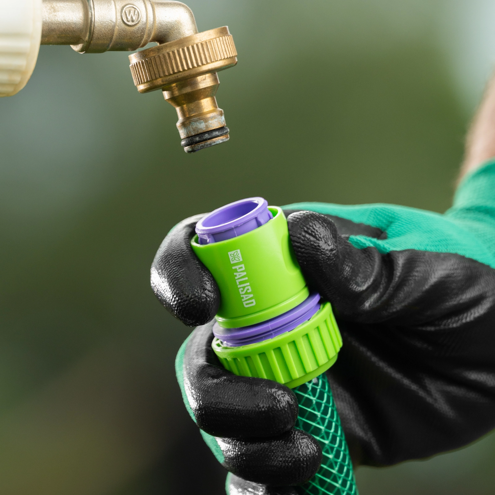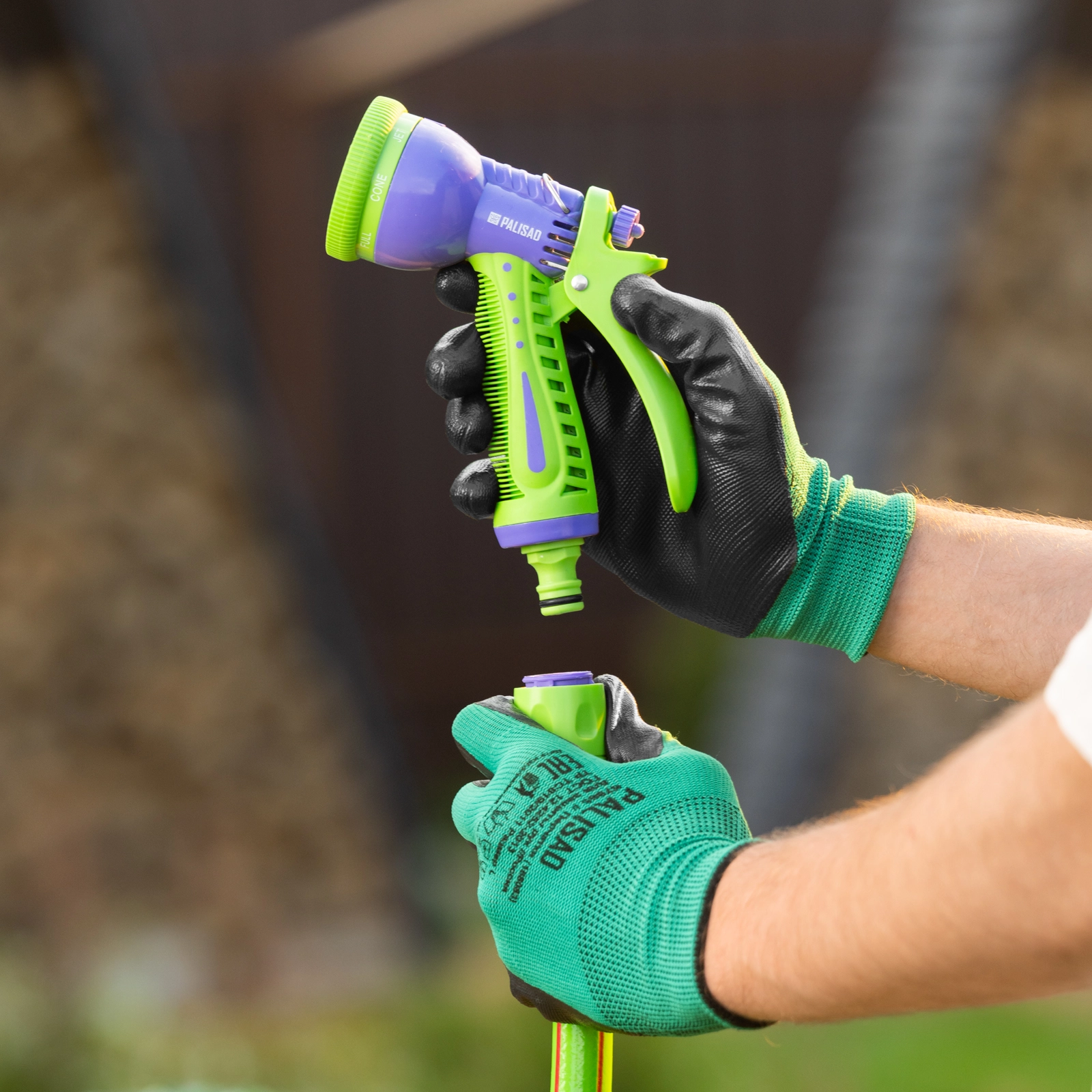 Набор для подключения шланга диаметром 3/4 дюйма Palisad 65177 включает пистолет с 8 режимами полива, адаптер и 2 соединителя.