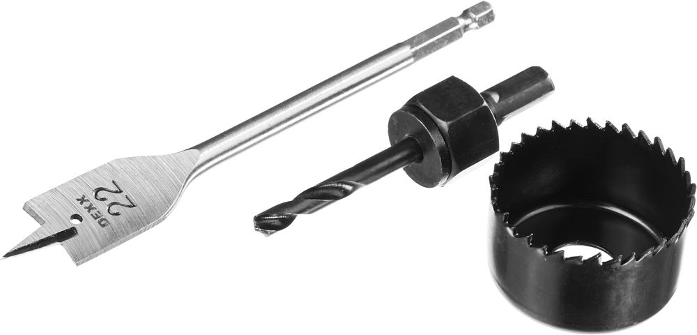 ПроизводителиНабор для врезки замков: коронка-чашка 48мм, сверло пер. 22мм, центр. сверло 6мм (2949-48-H3) DEXX